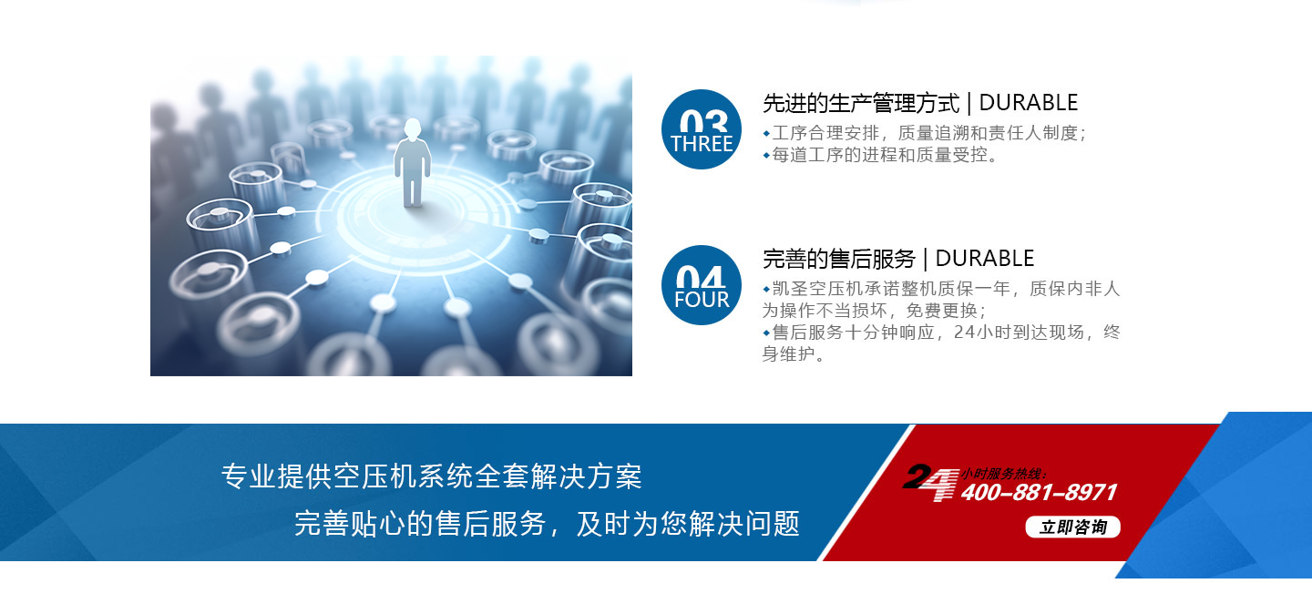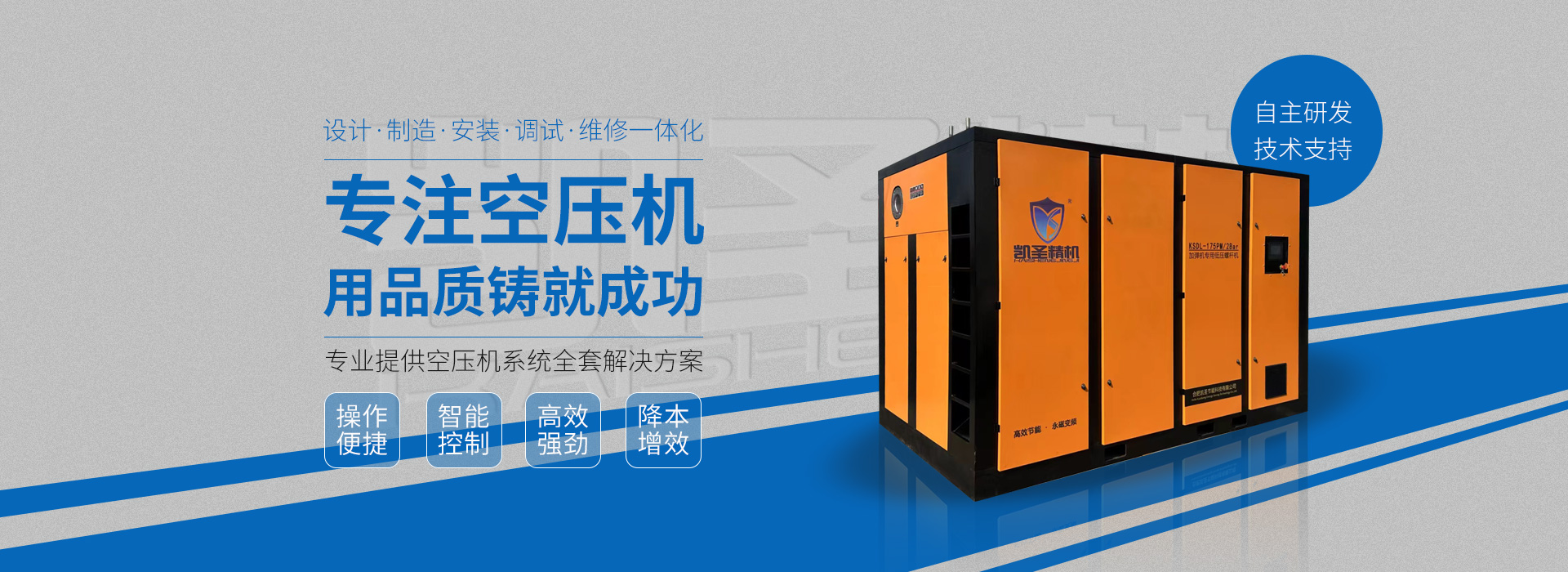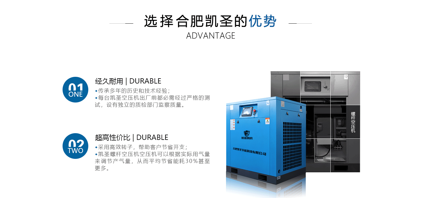 合肥凱圣節(jié)能科技有限公司是從事永磁變頻螺桿壓縮機系統(tǒng)的設計、制造、安裝、調試、維修與一體的公司。 在多年的螺桿空壓機研發(fā)與推廣歷程里,凱圣聚集和培養(yǎng)了大量壓縮機技術設計和管理人員,迅速發(fā)展成為集研究、生產(chǎn)、銷售、服務等環(huán)節(jié)為一體、嚴格按照標準執(zhí)行的企業(yè),公司成立開始,即以滿足客戶的實際需求為己任,大力開拓國內(nèi)外節(jié)能型空壓機市場,并始終保持創(chuàng)新精神,全力研發(fā)更為節(jié)能的螺桿式空壓機,努力站在空壓機節(jié)能領域的排頭位置。 應用范圍:公司產(chǎn)品廣泛應用于機械、輕工、紡織、食品、石油、化工、冶金、礦山、電力、城建、醫(yī)學研究和科研等各行業(yè)中,將為節(jié)約能源做出巨大貢獻。公司秉承“信譽至上,...